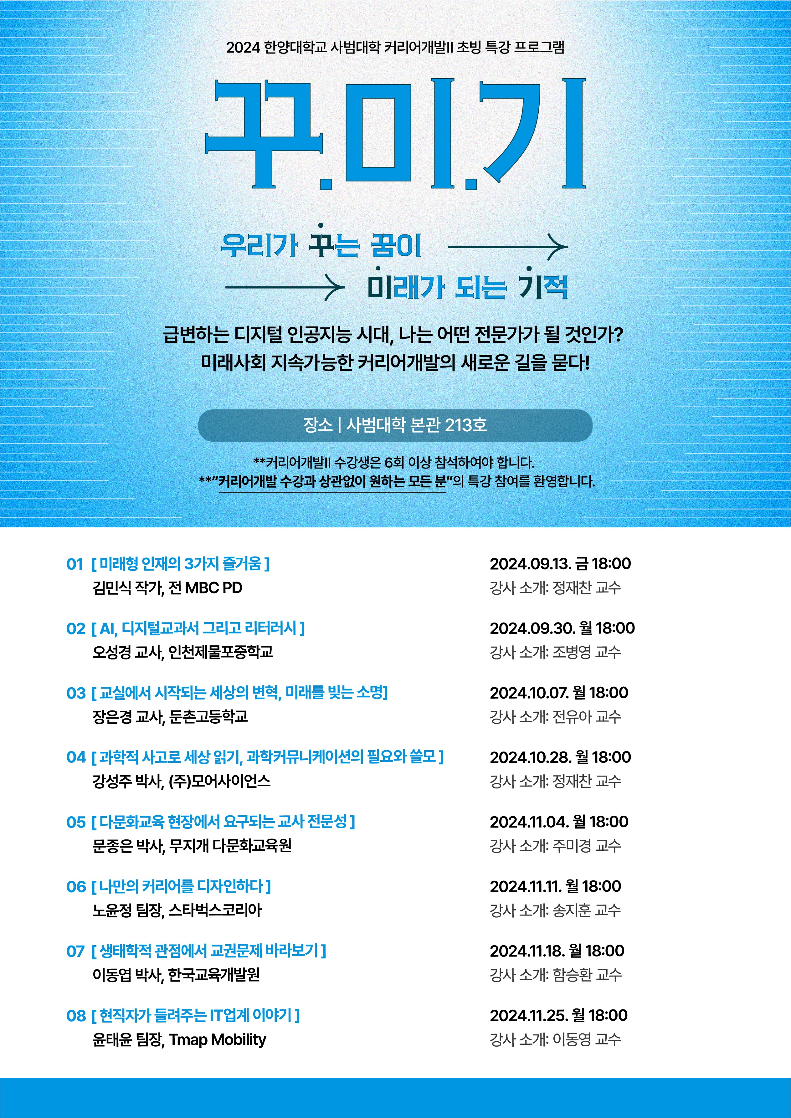 일반공지 [특강] 사범대학 커리어개발 II 특강 안내 Hit 8080